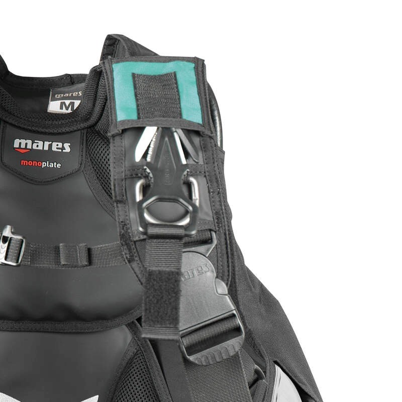 Possibilità di variare l’assetto con piombi standard da 500 gr e 1 kg fino ad un massimo di 4 kg. Spallacci regolabili elastici con fibbie a sgancio rapido in caso di necessità, per una
